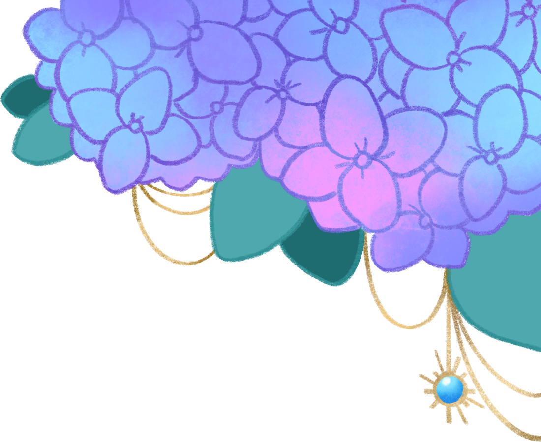 Hydrangea kanzashi: Given to her by the geiko Kotocho, one of her Kugane weaving clients, as a gift of gratitude. Worn by her left ear.