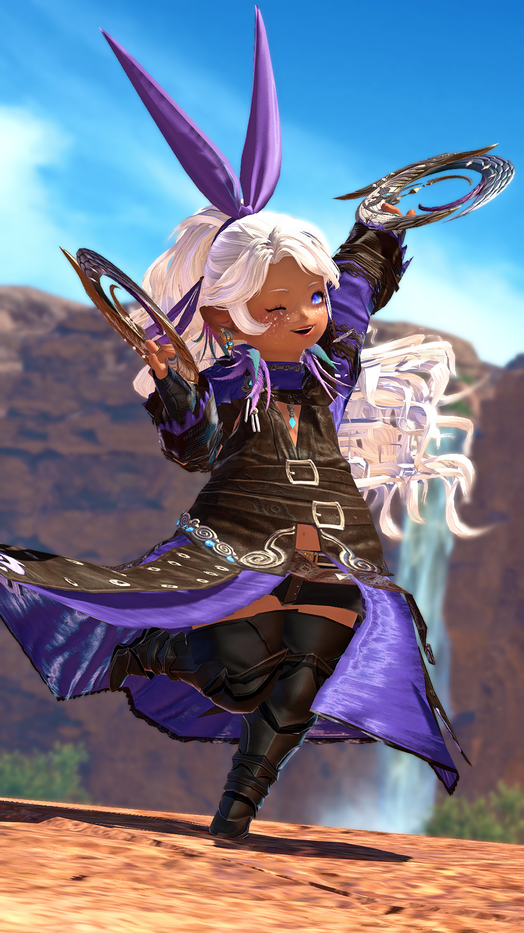 The finishing touch, her silk bunny ear crown, was a prize she won at the Gold Saucer, and though she realized they probably wouldn't get people to take her seriously she felt they were too cute to remove anyway.